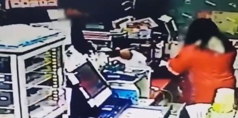 警方接獲通報,在15分鐘內掌握穿著藍色上衣的男子行蹤,隨即在坑菓路上的工廠,找到這名搶劫後已經喝得醉醺醺的男子,一群人將他壓制在地,眼尖員警發現他是轄區治安顧慮人口,86年次的林姓男子,有傷害、恐嚇以及妨害公務等多項前科,馬上將他逮捕,另外在他的住處找到52包香菸、18罐啤酒、現金兩萬多元。