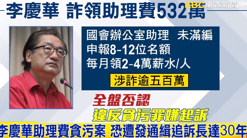 李慶華涉嫌詐領532萬元的助理費,來支付前妻贍養費、個人旅遊、房貸等私人花費時間長達9年,他在2007年被爆出,國會辦公室的助理沒有滿編,卻申報約8到12位助理名額,每個人頭每月可領2到4萬元的薪水,但李慶華面對指控全盤否認,推說都是交由主任處理,而他在訊後被依違反貪汙罪嫌起訴。