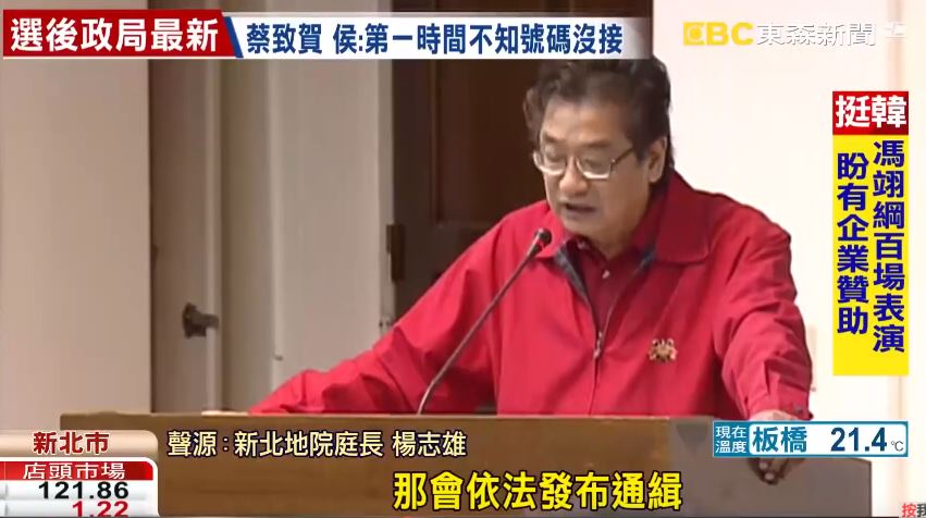 新北地院庭長楊志雄:「被告逃亡或藏匿,符合這種情形的話,法院就會發布通緝,本院被告(李慶華)經合法傳喚不正當理由不到庭,那拘提結果無著,如果符合通緝要件,那會依法發布通緝。」