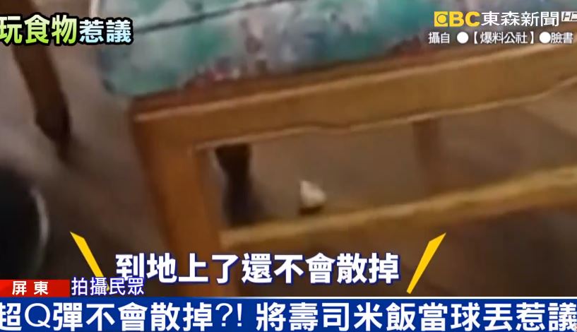 有民眾在墾丁一間五星級飯店用餐,沒想到其中竟然有人把壽司的米飯當球丟,原來,拍攝民眾指稱,米飯太硬了才會用丟的,沒想到還彈起來,對此飯店業者說,當下就跟客人解釋並安撫表示會改善,但這樣丟壽司米飯的畫面也引來爭議,被部分網友痛批,這是在玩食物嗎?