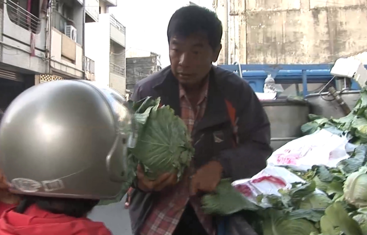 菜農 :「來一顆10元,一顆10元。(買菜民眾:檢調說要來蒐證,沒關係,說要來搜證,沒關係,農民鬱卒啦,說這樣幫忙賣菜也要蒐證。)」
