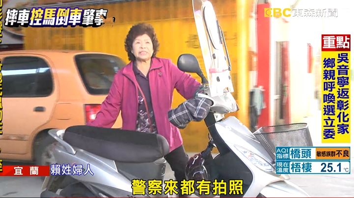 賴姓婦人:「馬臀部倒退撞出來,我不知道,到那邊正好撞出來,撞到我這邊(肩膀),我整個人跟摩托車都飛到路中。」