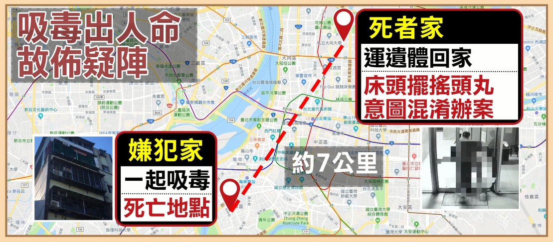 根據警方調查了解,楊女在轄內一間按摩店工作,11月30日當晚和先生吵架,隨後便離家找同事、閨蜜25歲黃女訴苦談心,兩人於12月1日上午到49歲黃姓男同事位於北市萬華區東園街租處吸毒。