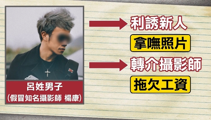 受害新人氣呼呼,因為這位呂姓男子假冒知名攝影師楊康,不只騙新人還騙了一堆同行。