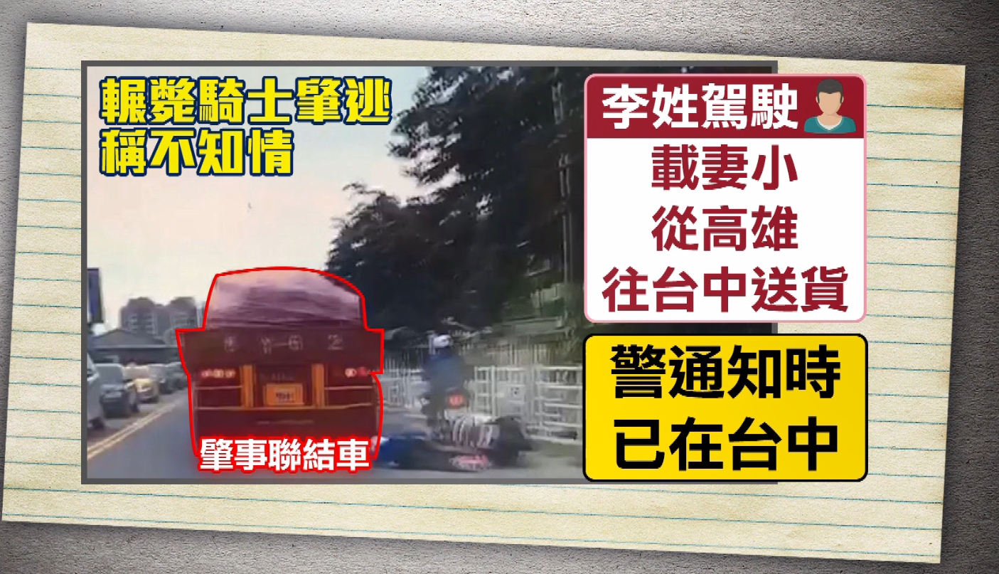 警方事後,以車追人,聯繫上肇事聯結車,當時李姓駕駛載著妻小送貨,接到警方電話時,人已經在台中。