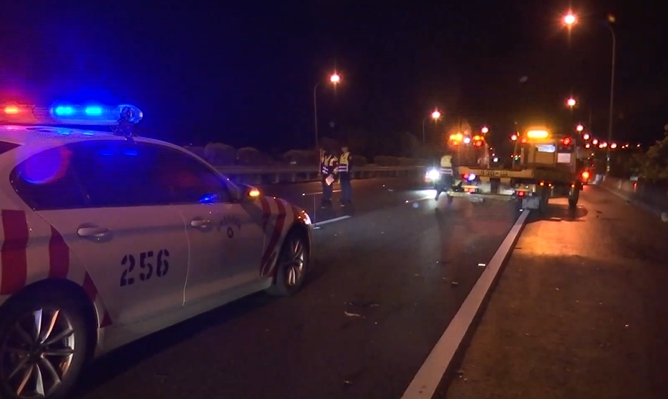 處理員警:「那台看有沒有辦法排除掉,先把它全線封閉。」凌晨4點多 ,國道一號銅鑼路段,一名男子躺在中線車道,已經明顯死亡,他坐的白色轎車,引擎室與車身分離,宛如斷頭車、怵目驚心。遭撞貨車乘客:「他們兩台要超我們的車,結果他沒有超過去,撞到我們的車頭(撞到你的車頭)他提早轉進來。」回想車禍過程,貨車乘客仍心有餘悸,他們的紅色貨車被撞,還有一人遭變形車體卡住,受困車內,消防隊員趕緊破壞車門要救人。幫忙報警的後車駕駛:「撞到碎片的時候,我們看到的時候,人就已經倒在地上了。」