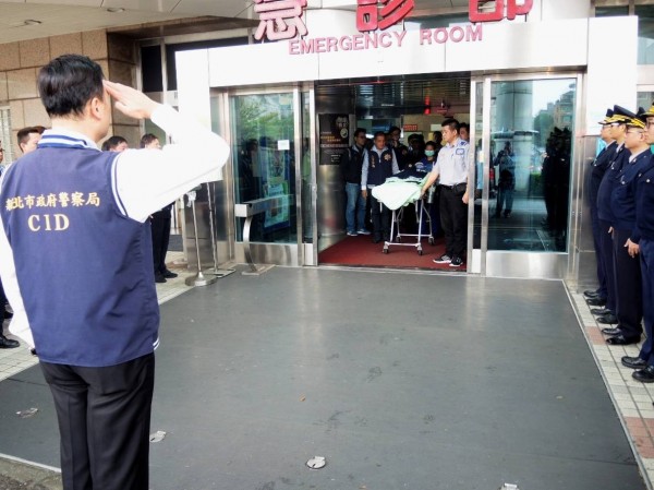 「任務解除,請好好休息!」新北市三重警分局鑑識小隊偵查佐蔡世汶,11月23日凌晨冒雨採證一起死亡車禍,返隊後卻高燒不退,甚至口吐白沫,緊急送醫後被確診罹患急性腦膜炎,陷入昏迷命危,家屬忍痛在急救19天後決定拔管放棄急救,三重警方也於今(11)上午率80名警力,於醫院門口列隊致敬,替蔡世汶穿上刑警背心後,護送他回到彰化老家。