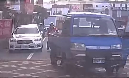 而在台東,一輛小貨車因為不明原因,在上坡停等紅燈時,突然倒退嚕,後方2輛轎車趕緊靠邊閃開,一名機車騎士也險些被撞上,可以看到駕駛打開車門,想要跳車逃生,但撞擊瞬間疑似重心不穩,人從車內摔了下去,因此被壓在車底下。