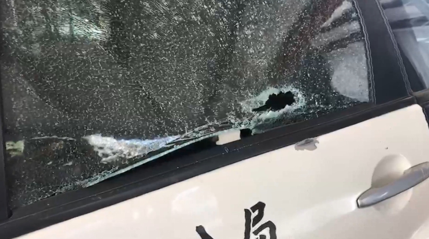 還好有手機救了一命,而遭槍擊的就是這台警車,子彈貫穿左後車窗,窗戶破碎裂成蜘蛛網痕,還有左前方的後照鏡,同樣被擊中,嫌犯開槍後逃逸,丟下腳踏車跟私人物品,警方在現場找到5枚彈殼,也成立專案小組搜山清查,全力逮捕這名開槍嫌犯。