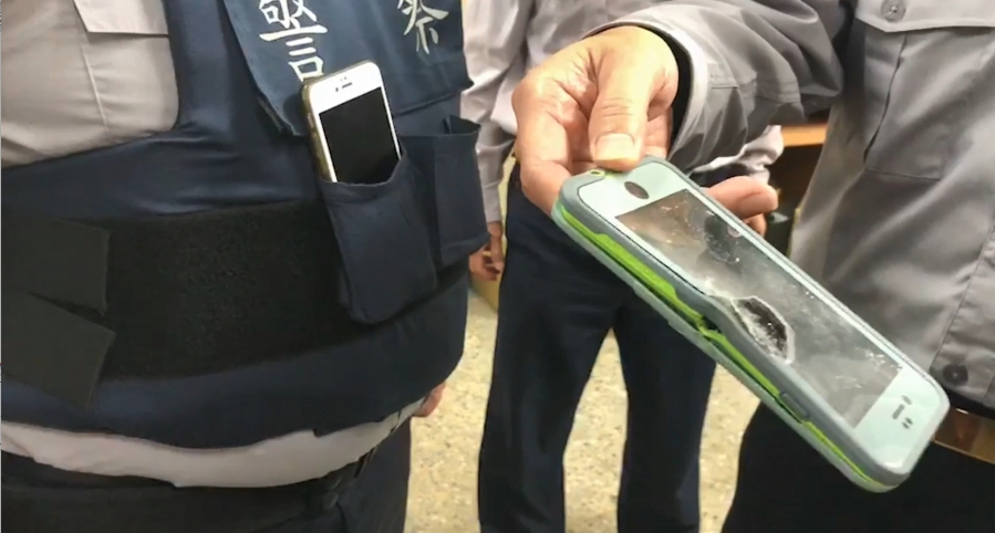 台南玉井警分局楠西分駐所長王者音:「當時那顆子彈應該是又打中這邊,還好還有鋼板,有雙層保護,前面又有防彈襯。」