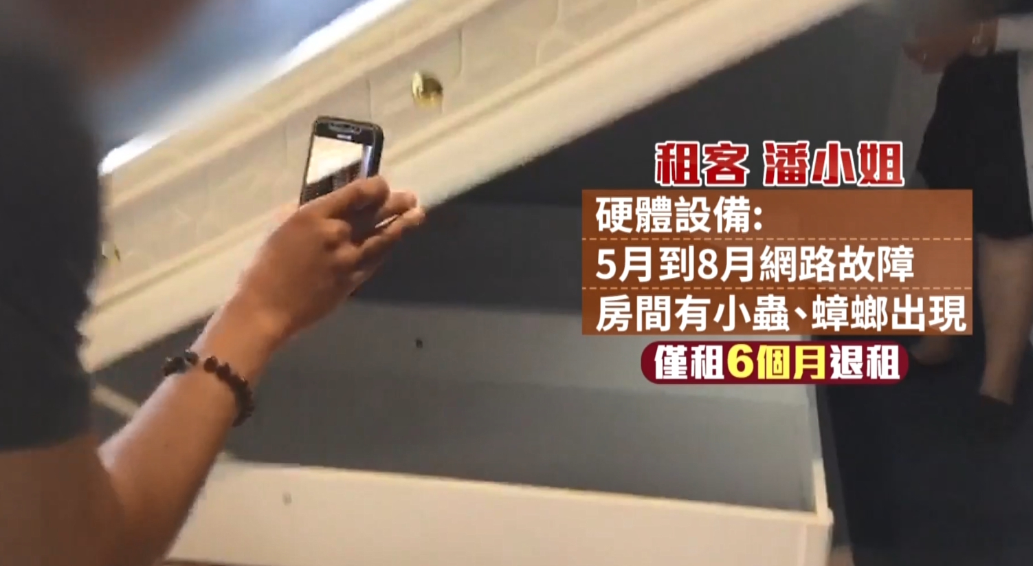 沙發、玻璃圓桌,底下鋪著地毯,客廳廚房風格經過設計,屬於所有房客的交誼廳,這是現在最火紅的共生公寓,比一般套房有更舒適的空間,潘小姐跟先生租下月租1萬8000的套房,不過住了半年卻控訴,網路一直修不好,房間也出現小強跟小蟲,半年後決定退租,但沒想到卻被扣了一筆3600元的費用。