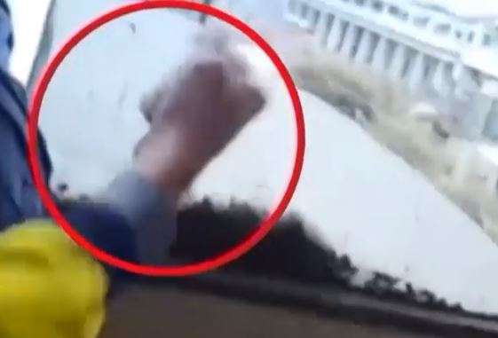 警察vs.民眾:「手喔手喔,手上有玻璃」。