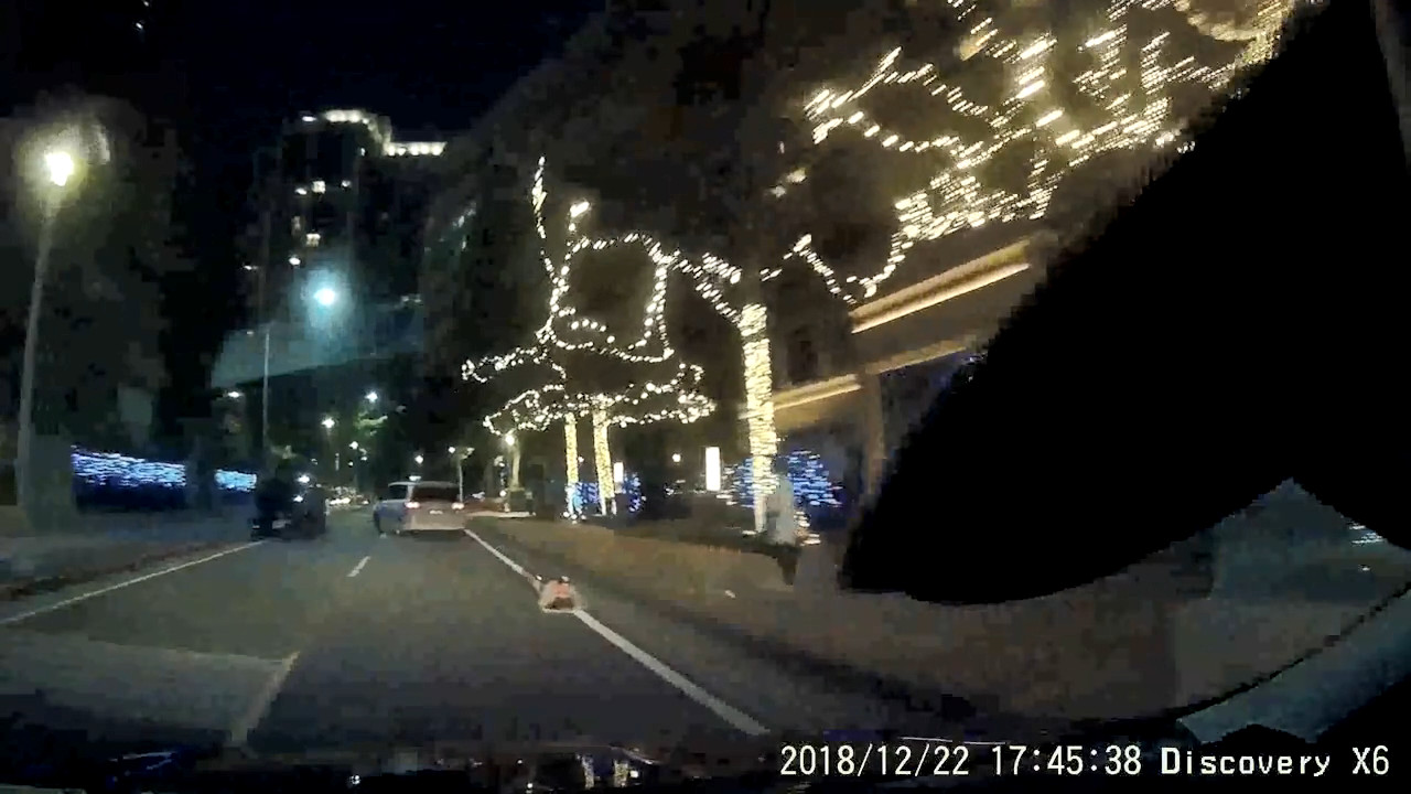 一名網友在臉書《爆料公社》社團發文,他PO出一段行車紀錄器影片,事發於22日傍晚5點45分左右,「工作完從台中開200多公里回家,在冠德遠見大樓這裡差點輾過一個人」,透過畫面可見,路旁白線上趴了一個人,由於天色昏暗,看起來很不明顯,一不注意很容易忽略。他痛批:「沒事趴路上幹什麼,保全公司都不管,壓死這個要怎麼算」,也透露事後去拜拜收驚,直呼:「母娘慈悲」。