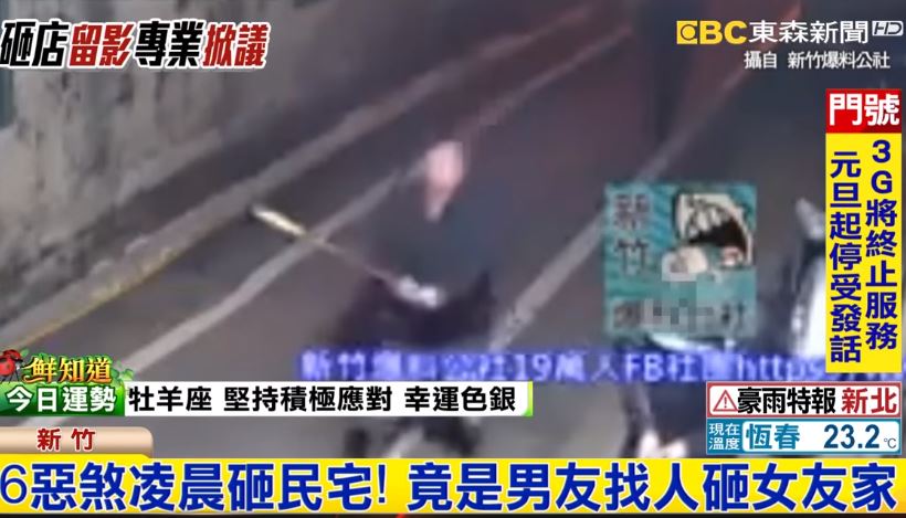 新竹新豐一戶民宅凌晨出現6名惡煞持棒球棍,朝門窗猛砸,把窗戶玻璃全給砸破,甚至有人疑似拿出手槍射擊民宅,沒多久警方接獲報案趕來,惡煞全都逃逸,據了解雙方有感情糾紛,男方找來朋友對女方家砸屋洩憤,恐嚇意味濃厚。