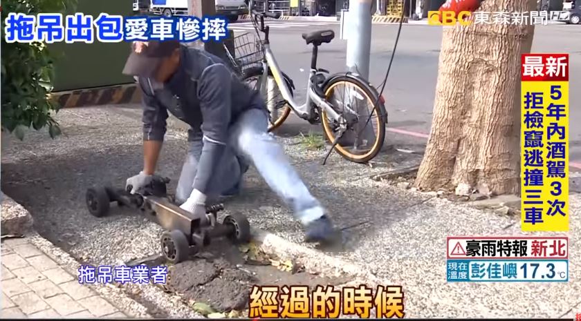 拖吊車業者:「人行道路樹方方正正的磁磚,有高低檻,有高低地方,經過的時候,溜冰鞋剛好高度不夠。」
