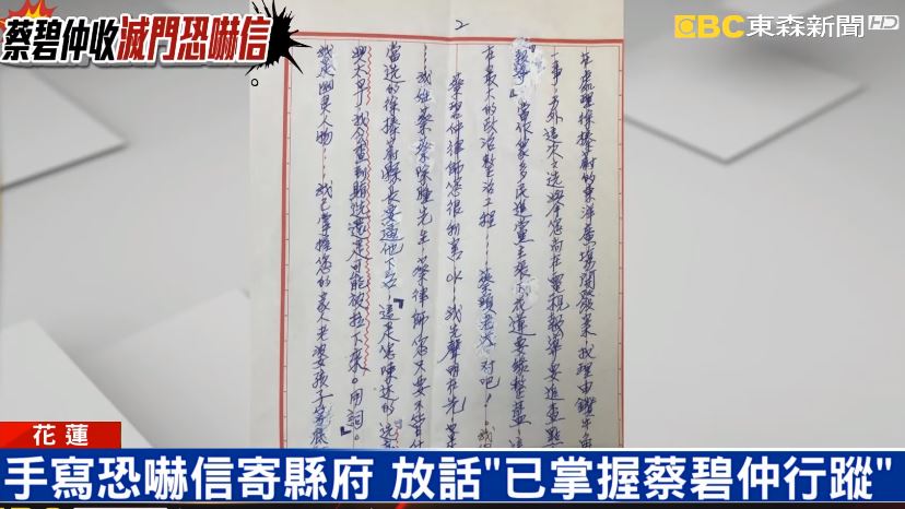 花蓮代理縣長蔡碧仲:「因為他涉及到要殺害我的家屬,所以我一定要,有具體的一些作為,所以我馬上就把這封信函,交給花蓮縣的刑警大隊。」