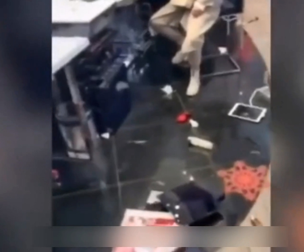 櫃姐:「你看全給我們家砸了,全都給我們砸了,你再動,(別弄我!)你看你把我們家砸的。」