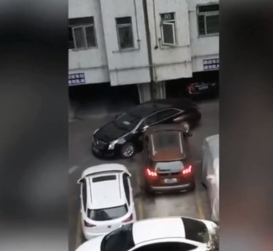 紅色轎車四周都被包圍,車位被堵死,駕駛乾脆撞出一條血路,幫自己開道,根本不管黑車左側車門已經被撞到凹陷,把擋路的黑車撞開後,駕駛隨即開走。