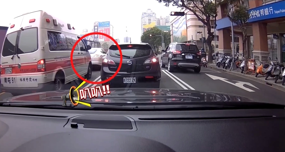 救護車十萬火急趕著救人,前方這一輛白色保時捷卻是一動也不動,賴俊吉之後被肉搜,出面道歉後彎腰鞠躬,還說要捐救護車。