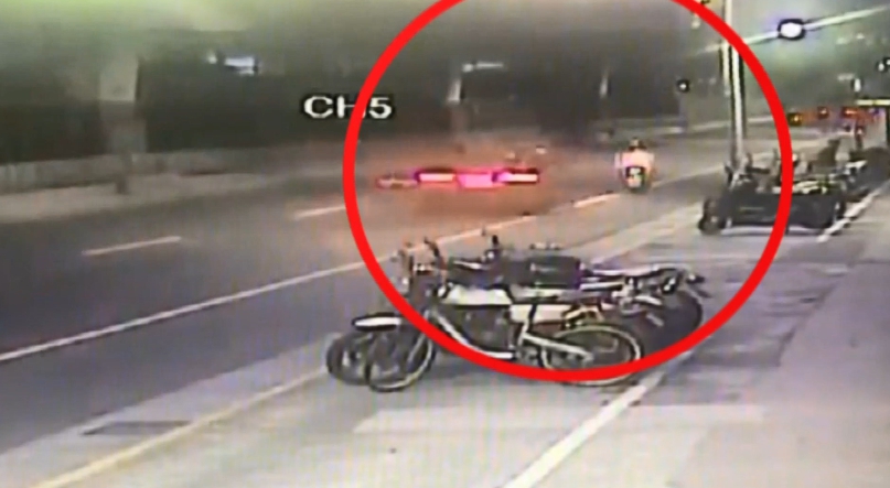 一台轎車速度飛快,掃進騎樓底下,只見車頭轉了一圈半,把停在騎樓底下的所有機車撞倒,棚架應聲摧毀,宛如災難現場,被撞到的陳姓女騎士,撞到頸椎、肋骨斷裂,最後傷重不治,這是發生在今年9月23號北市基隆路的酒駕車禍,造成1死兩傷。