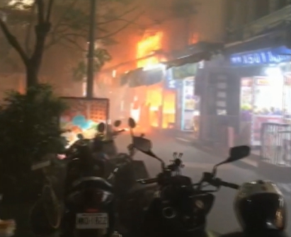 熊熊火光,大火一發不可收拾,簡直快吞噬掉一樓建築。