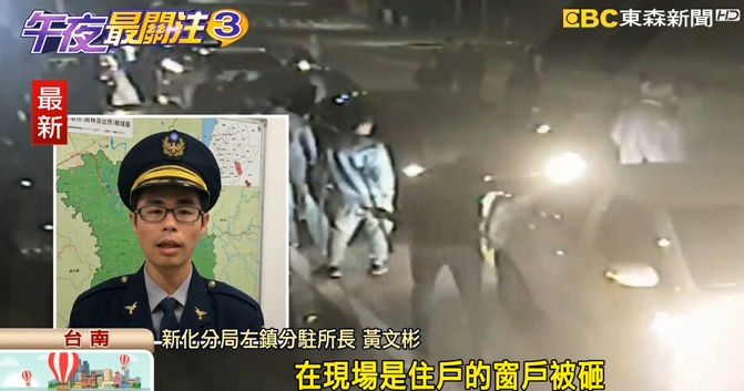 新化分局左鎮分駐所長黃文彬:「警方到達現場的時候,相關的涉案人員都已經逃逸,在現場是住戶的窗戶被砸,以及車輛的後照鏡被砸,但是沒有人受傷,警方經過調閱監視器之後,已經掌握相關的車輛。」