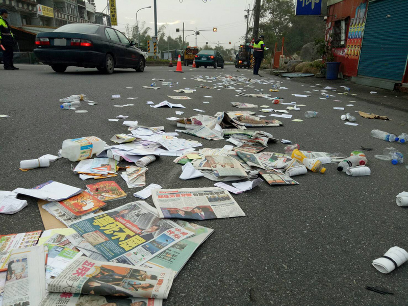 附近居民指出,聽到猛烈撞擊聲響,就看到資源回收物品散落一地,工程車擋風玻璃碎裂,林男被撞飛,倒臥在路旁,鮮血不斷流出,因此急忙通報警方前往處理。