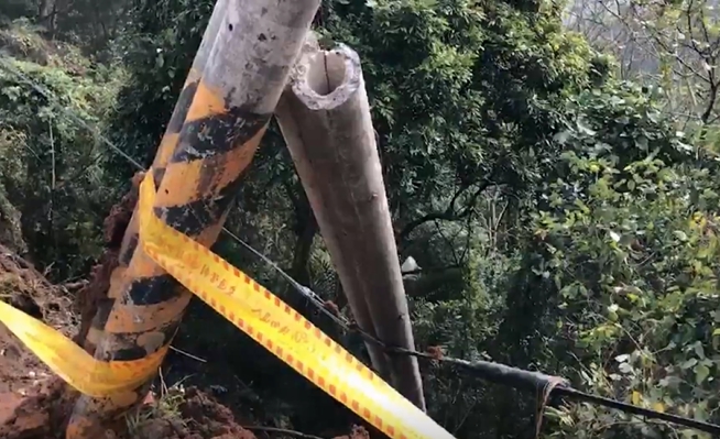 回到事發現場,整根電線桿被攔腰撞斷,柏油路面留下長長一條摩擦痕跡,警方擺放三角錐,拉起封鎖線。