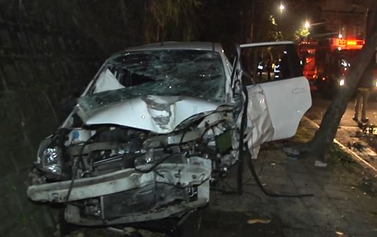 台北內湖成功路五段,今(14日)凌晨2點多,發生嚴重的自撞事故,一輛休旅車失控撞上行道路樹,還一路往前衝了40公尺才停下,22歲盧姓駕駛重傷一度受困車內,幸好送醫後沒有生命危險,不過酒測值,高達0.78豪克。