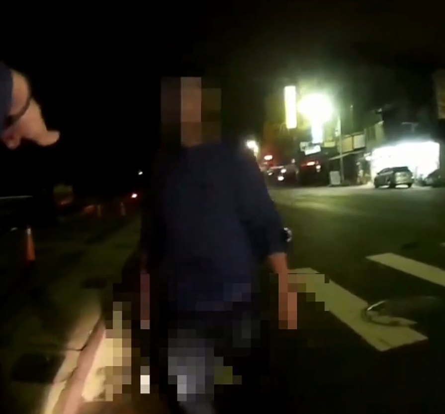 大灣派出所員警蘇靖媚:「蹲下!給我停下!你要怎樣?不要動,那個不要動。」