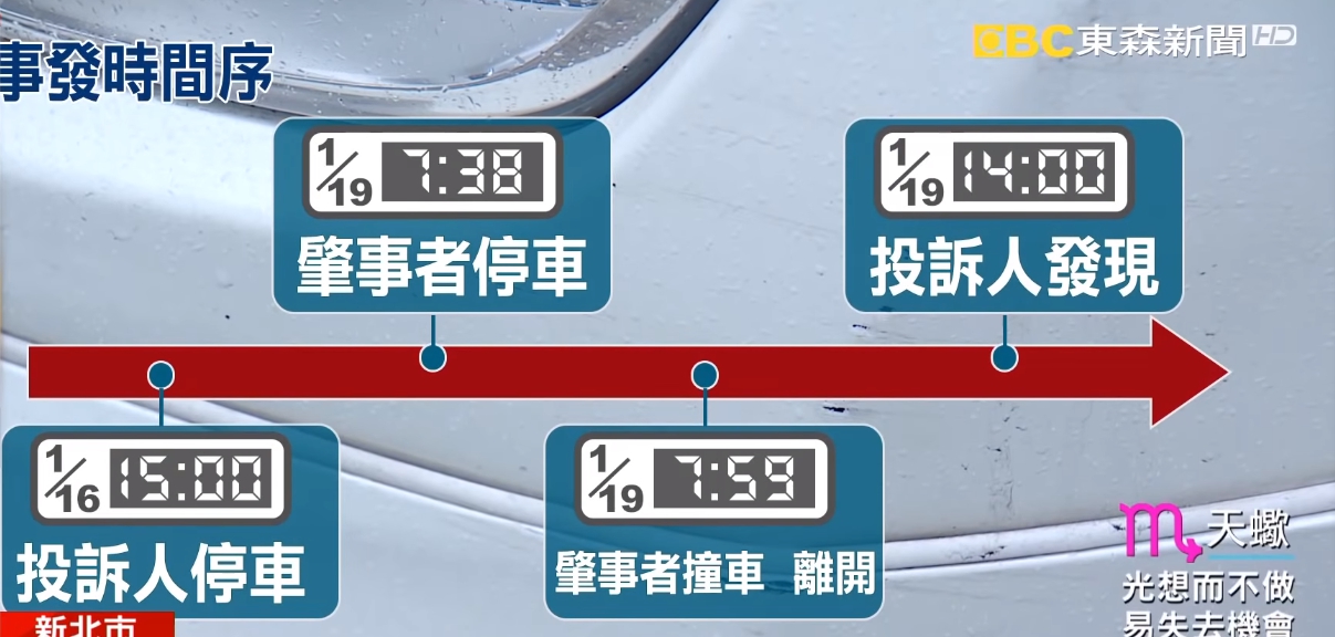 投訴人林先生(遭撞車主):「這邊也有很足夠的空間,他怎麼還會撞到,何況我的車已經停得那麼裡面,(他肇事)第一個反應,就是直接開走。」