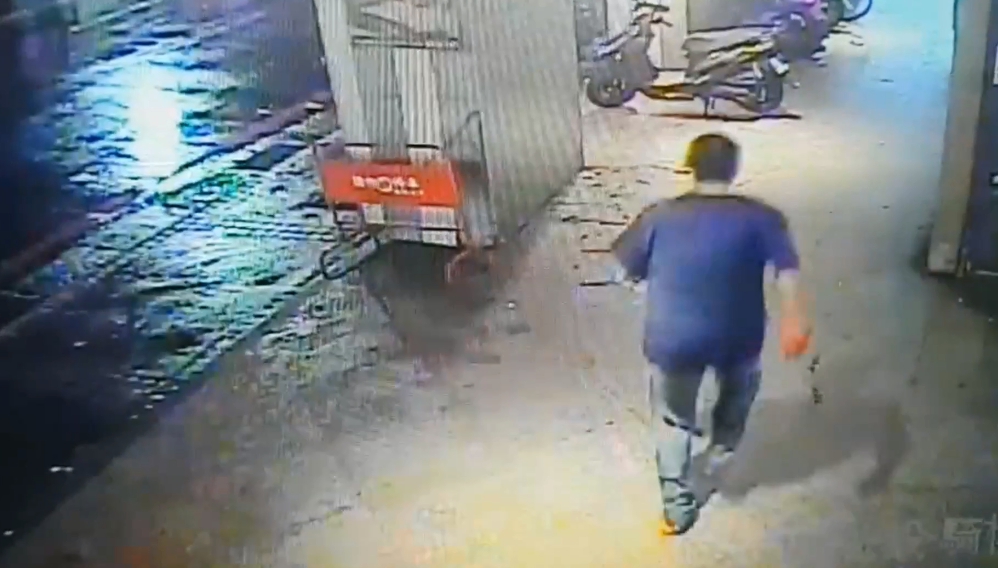 犯案後變了個人,態度龜縮,但看看當時店內監視器,兩人一發生推擠後,嫌犯這時拿著摺疊刀,就往對方猛刺,隨後離開,店員負傷追了出去,大吼要他停下來。