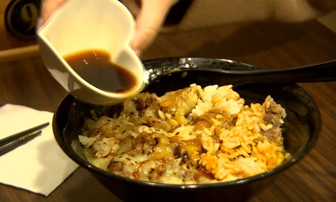 東森新聞記者林莉:「好吃的丼飯上桌,但 好像醬汁不太夠,我還想要多一點醬汁,(我要續一個丼汁),(小姐 妳續的的醬汁來了),如果覺得醬不夠的話,店員會像這樣,再給妳一碗醬汁,讓您自行添加。」