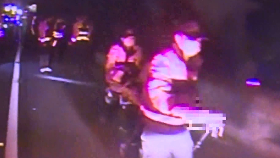 嘉義縣消防局民雄分隊小隊長黃淵哲:「是一台自小客追撞護欄,停放在靠近中線,後面的車子看不清,造成追撞。」