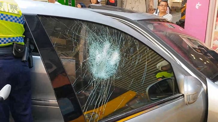 這個乘客還跟警察大聲小聲,警方只好上前將嫌犯壓制在地,一度還發生肢體衝突,副駕駛座的車窗玻璃也被打破。