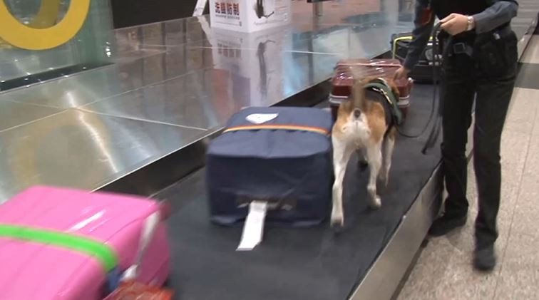 桃園機場內,檢疫犬走過旅客身旁,仔細搜尋氣味,就怕會有旅客攜帶肉品入台。