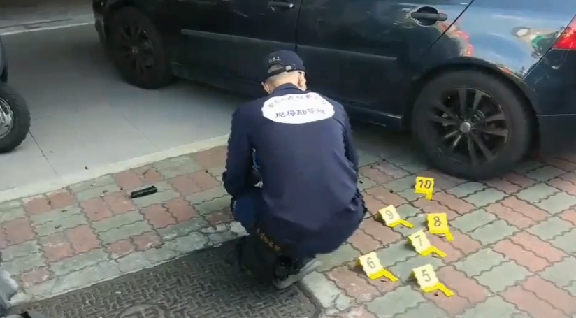 囂張嫌犯當街開槍,就發生在新北新莊化成路上的一間貿易公司門口,20幾枚的彈殼散落一地,陳姓嫌犯做案用的槍枝和彈匣也還遺留在現場,警方圍起封鎖線進行搜查,對嫌犯的機車更是仔細採證,一點蛛絲馬跡都不放過,只是巨大的槍擊聲響,不只嚇壞了路過的騎士,更讓附近住戶人心惶惶。