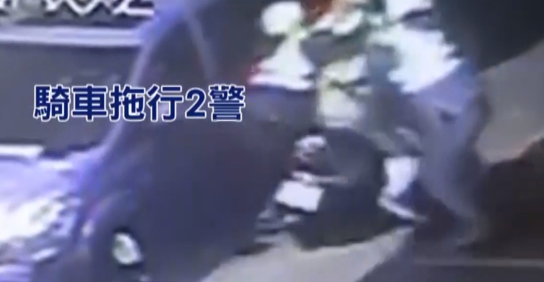 暗夜巷弄,騎士騎到一輛廂型車前,身體彎腰,手往下伸,看起來像撿東西,一旁兩輛警車經過後,騎士後退想離開,突然衝來一名員警,強拉騎士下車,但他頑劣反抗,繼續催油門,另一名員警也衝來逮人,可是一人一邊仍被騎士往前拖行約20公尺,直到轉進巷弄,機車不穩摔倒,騎士還是持續反抗拉扯,兩名員警趁機將他上銬,騎士激烈反抗,就是因為喝到醉醺醺,酒駕上路,不想被逮。