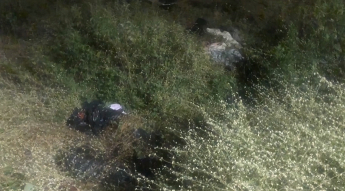 ▼吳男殺害女友之後,將屍體棄置在草叢。(圖/東森新聞)