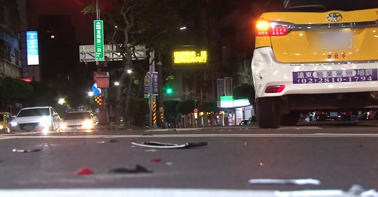紅燈了,但運將司機沒有停下,騎士嚇壞連滾帶爬,滿臉驚恐、跳車逃命,發生這麼嚴重的車禍,重機還卡在小黃前方,肇事司機竟沒有停下繼續往前開。