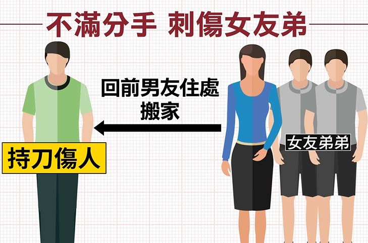 大白天看到有人持刀傷人嚇壞鄰居,這起意外也造成大弟右手受傷外,小弟則頸部遭劃傷一刀,持刀傷人的李姓前男友手部輕傷,所幸都沒有生命危險。