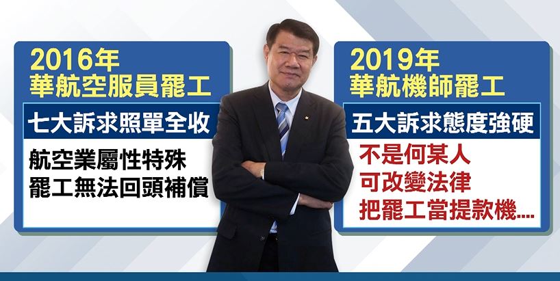 華航企業工會臉書Po文,批評董事長上任來第一次到機場,還要求何煖軒下台勞資鬧到僵,和三年前他臨危受命處理首次空服員罷工完全不一樣。