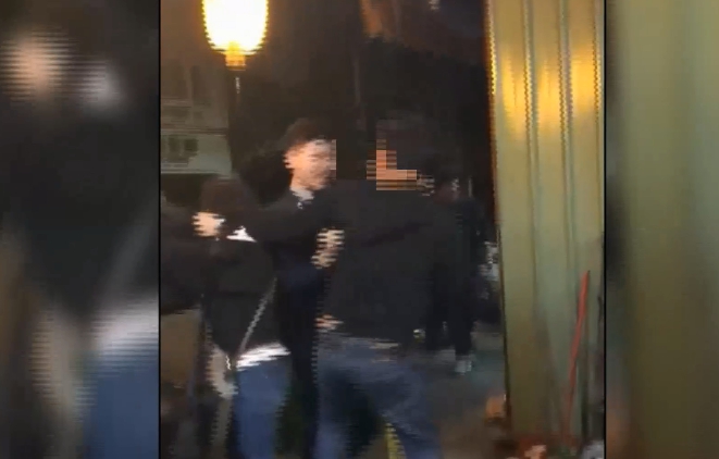 兩派人馬扭打在一起,警方獲報到場勸離,他們卻不肯罷手,從另一段畫面中,可以看到當時員警拉開雙方,但這群人怒氣衝衝,還在互嗆,員警只好對空鳴槍。