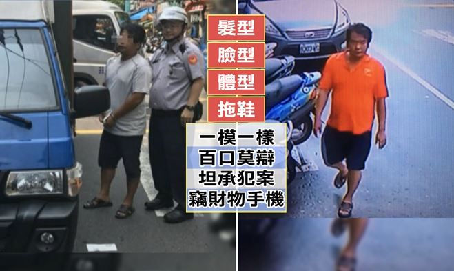 偷完手機財務,竊賊若無其事大搖大擺離開現場,警方循線調閱監視器,鎖定特徵最後抓到人,還查到他用同樣手法,犯下另一起竊案,但他卻矢口否認。員警拿出影像比對,發現不管是髮型、臉型,還是體型、甚至連拖鞋都同一雙,通通一模一樣,讓竊賊百口莫辯,坦承犯下兩起竊案,偷走小貨車財物手機。攤販做生意前,得先卸貨整理,貨車只能暫停一下,要卸貨、上貨,速度能多快就多快,竊賊就是看準司機卸貨,通常不鎖門,心生歹念下手。