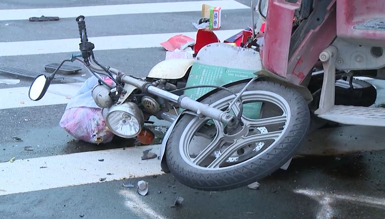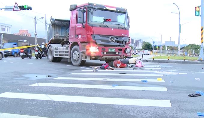 機車幾乎卡進砂石車車頭底,已經嚴重扭曲變形,車殼零件全都散落一地,車道上還留有大片血跡,回想起當時這突如其來的事故,砂石車駕駛還是驚魂未定,不幸的是林姓機車騎士,在送醫搶救之後還是宣告不治。