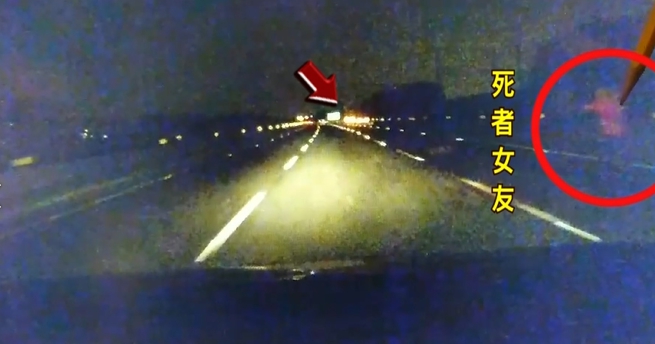 行車記錄器畫面中,先看到黑色轎車停放路肩,黑暗中隱約看到外側車道上躺著的就是韓姓死者,死者女友站在車邊,往前還有兩輛轎車也停靠路肩,11日清晨五點多,49歲的韓姓男子開車載女友行經國道一號北向184.5公里處,疑似恐慌症發作,先擦撞內側護欄後移至外側路肩。