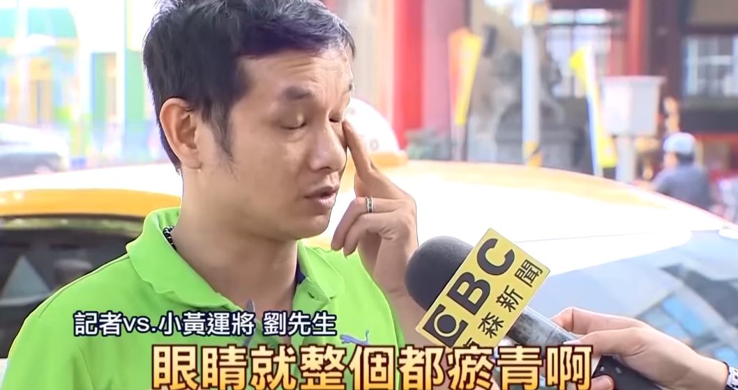 記者vs.小黃運將劉先生:「眼睛就整個都瘀青啊,然後又打我頭部啊,(記者:就全部一直打著你的頭)對啊!都是往頭部重要部位打。」