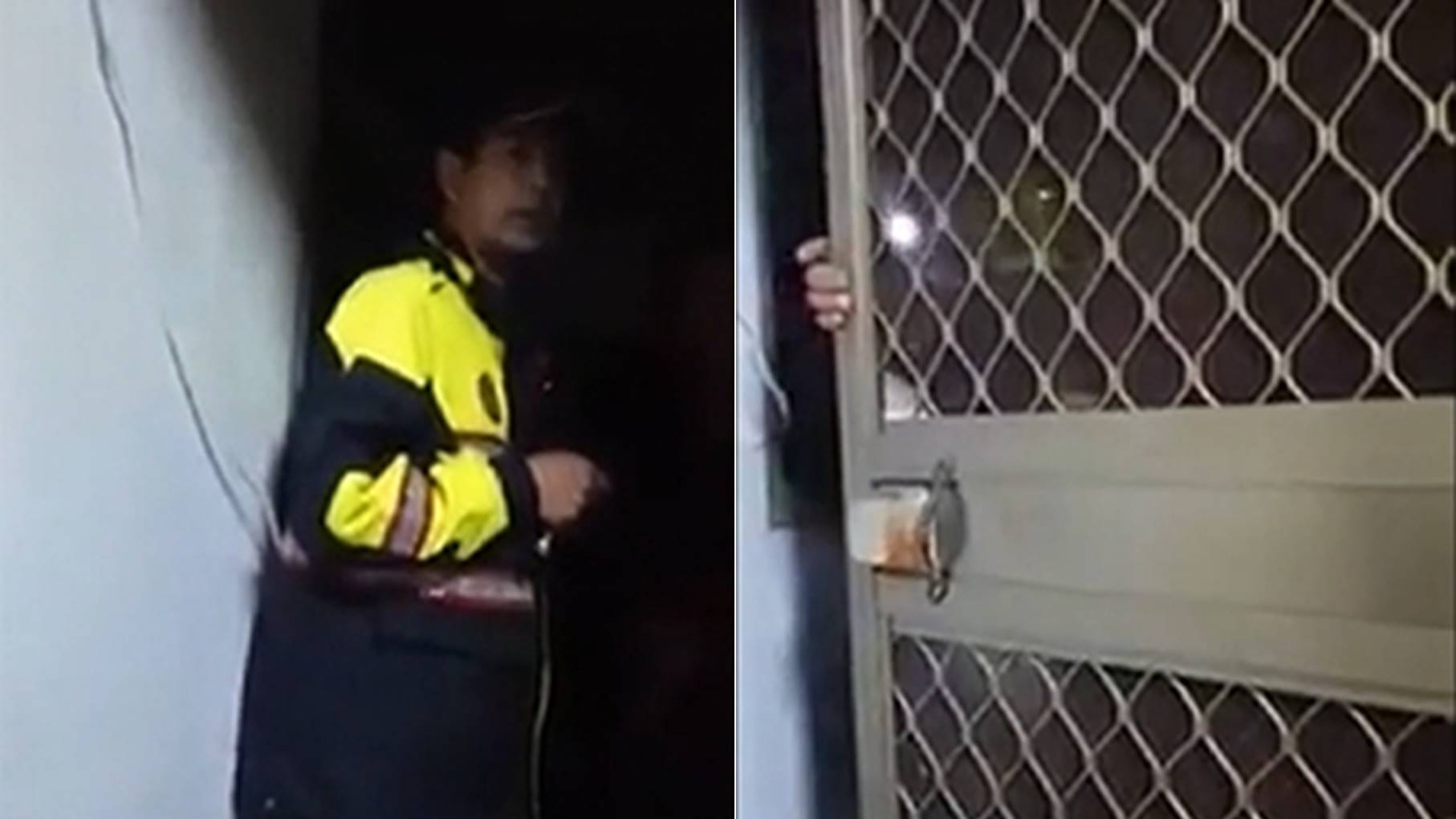 門口的監視器拍到叔叔對著空氣自言自語,很激動的比手畫腳,走來又走去,半夜的詭異舉動經常會嚇到人,更可怕的是,他還會跑到姪子家亂敲門,不開門就站在門口等待,已經讓姪子的老婆心生恐懼,多次報警處理。