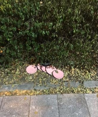 六個盤子被人棄置在草堆,民眾看傻眼,懷疑有人為了躲避算錢,偷藏迴轉壽司的盤子出來丟掉,直呼真的很丟臉,事後很熱心的撿起來還給店家,對方也傻眼。