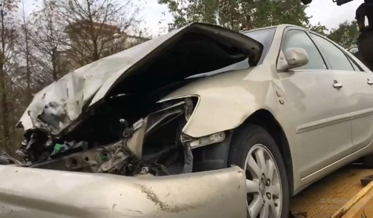 引擎暴露在外車頭蓋徹底變形,一旁民眾全被這景象嚇傻了!